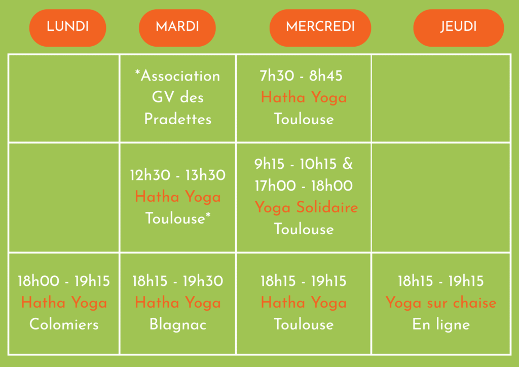 Hatha yoga à 18h15 à Blagnac le mardi et à Toulouse Pradettes le mercredi